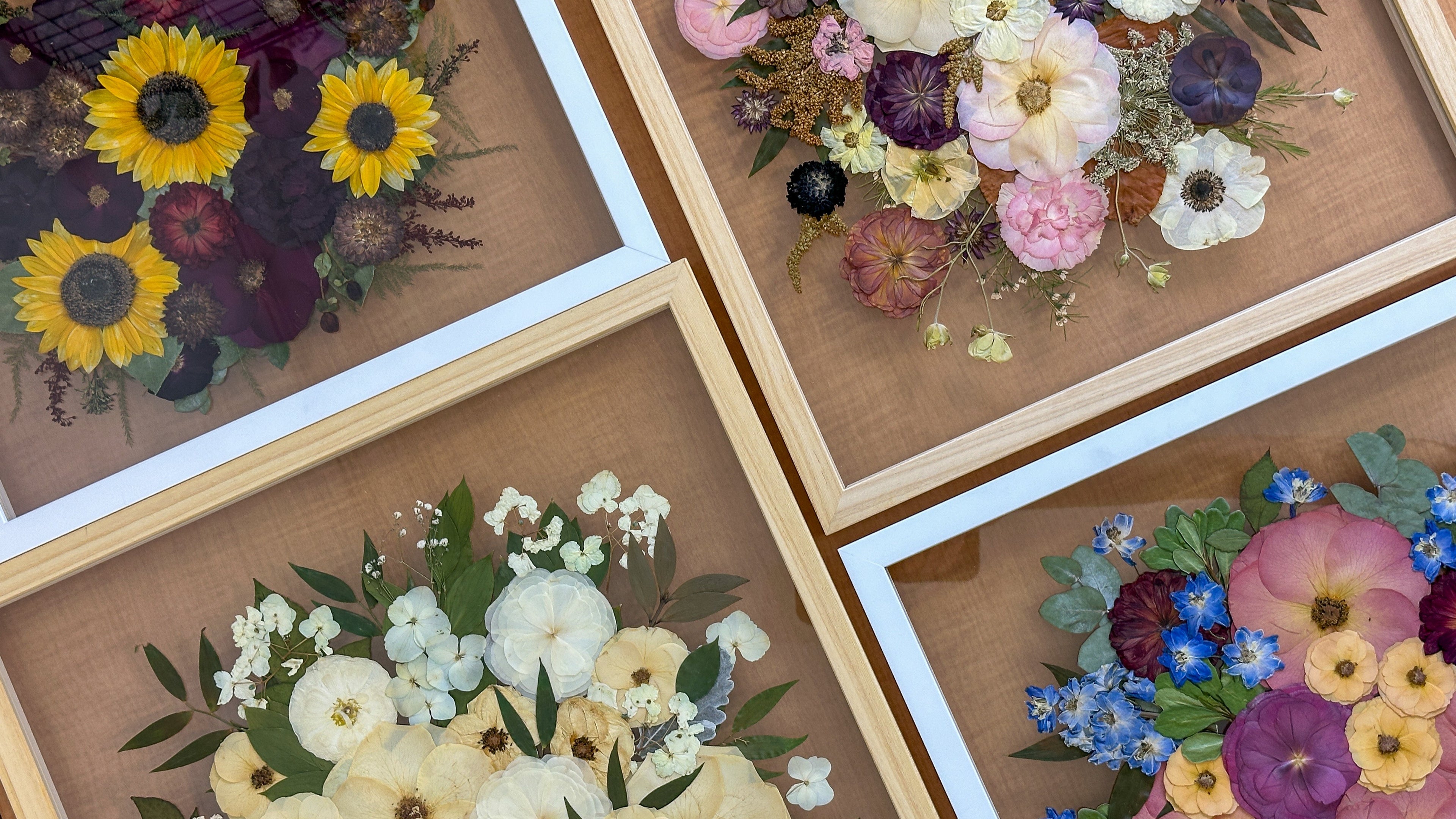 When your flowers are ready, I will complete any flower reconstruction, and you will be added to the design queue. Once we reach your spot in the queue, I will reach out with two design options for your review with a possibility for revisions before I frame your artwork.